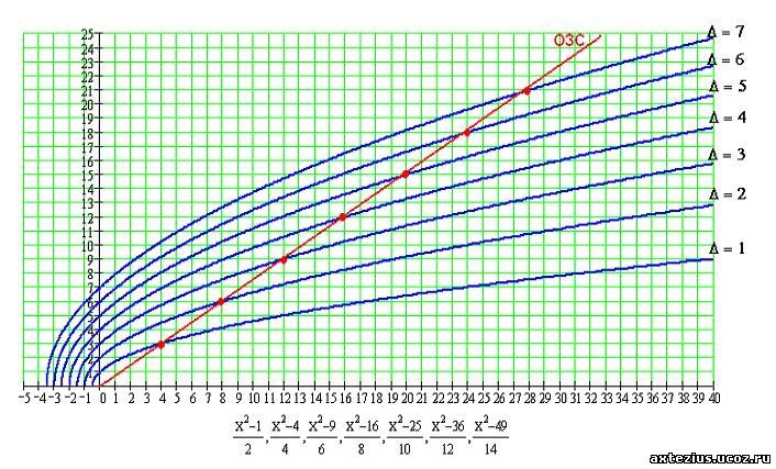 вертикальных функций. Затем определяются значения Y, согласно правил, что шаг прогрессии для четных функций равен ∆, а для